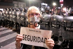 Alrededor de las 20.30 se produjo un momento de tensión cuando parte de los manifestantes avanzó sobre el cordón de policías que los dispersaron con gases lacrimógenos y gas pimienta.