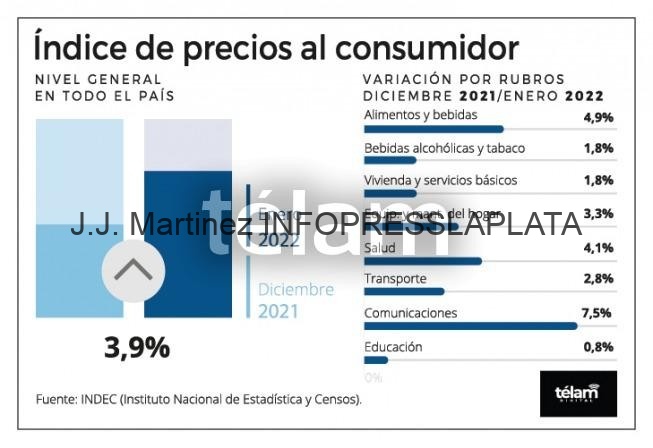 El Indice de Precios subió 3,9% en enero, mientras que la inflación núcleo fue de 3,3%