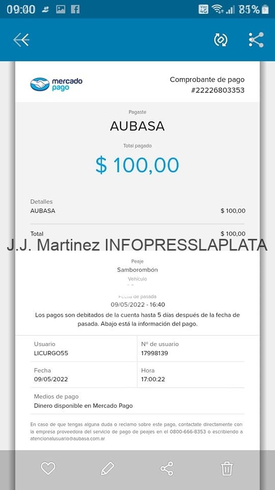 En un posteo que realizo en su cuenta de facebook un vecino de San Clemente, advirtio a sus amigos SI CIRCULAN POR RUTA 2 Y TIENEN TELEPEAJE CONTROLEN SUS PAGOS, EN EL PEAJE SAN BOROMBON ME PASO QUE ME DEBITARÓN DE MI CUENTA 4 PEAJES. SI SE FIJAN EN LOS COMPROBANTES ESTAN EXPEDIDOS CON UN MINUTO DE DIFERENCIA. LLAMO A AUBASA Y SOLO TIENEN ANUNCIOS LOS EMPLEADOS ESTAN OCUPADOS. CONSULTE EN LA OFICINA DEL PEAJE Y ME DIJERÓN QUE TIENEN REGISTRADO QUE PASE 1 VEZ, NO SE COMO PASAR 2 VECES EN UN MINUTO. HASTA EL MOMENTO NO TENGO RESPUESTA NI DE MERCADO PAGO NI DE AUBASA. ME SIENTO ESTAFADO. ACLARO QUE PASE EL DIA DOMINGO 8 Y A MI REGRESO EL LUNES 9 VOLVIERÓN A COBRAR DOBLE.