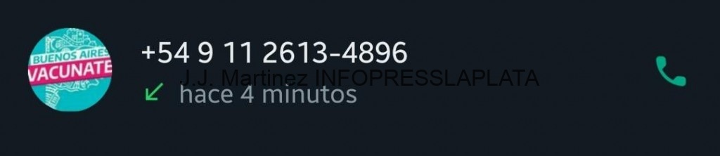 En el mensaje que le enviaron a una persona el mismo dice: Es la segunda vez que me llaman en el día y me dicen que me van a otorgar un turno para la vacuna COVID, al cual le contesto que si y que dosis seria me dicen la segunda dosis, a lo cual les digo buenísimo y cuando seria la segunda dosis y me contestan que me enviarían un mensaje y me piden que no corte la comunicación y vea el mensaje con un numero de confirmación así sabemos que es usted y le otorgamos el turno. La persona receptora del mensaje ya tiene la segunda dosis y procedió a cortar el llamado, el numero de confirmación que le enviaron es para habilitar whatsapp en otro teléfono, finaliza diciendo abrazo y cuídense.
