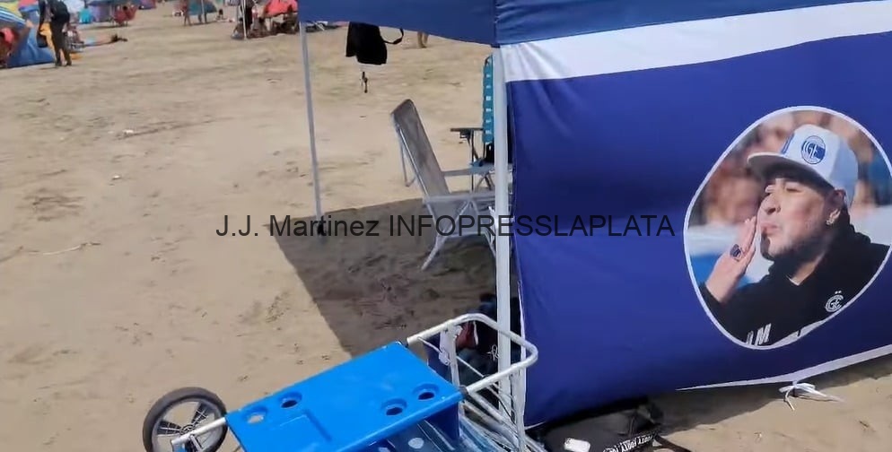Un hincha de Gimnasia Esgrima La Plata, Club en el cual Diego Armando Maradona tuvo su último paso como DT en el fútbol argentino, se fue de vacaciones con una carpa hecha en homenaje al DIEZ y es furor en la costa atlántica bonaerense.