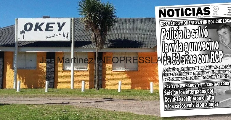 En la madrugada del dia domingo 23 de Enero, el Mayor Acosta Nestor Fabian, numerario de Estación Comunal de Pehuajo, en circunstancias en las que se encontraba franco de servicio, en el interior del local bailable Okey, asiste a una persona descompensada, sin signos vitales aparentes, lo que motivo a que en el lugar, iniciara maniobras de R.C.P., durante unos 25 a 30 minutos, sosteniendo sus signos vitales, hasta ser trasladado por una ambulancia del Hospital Municipal de Pehuajo, identificado como ORTIZ, Jorge Luis, de 56 años .