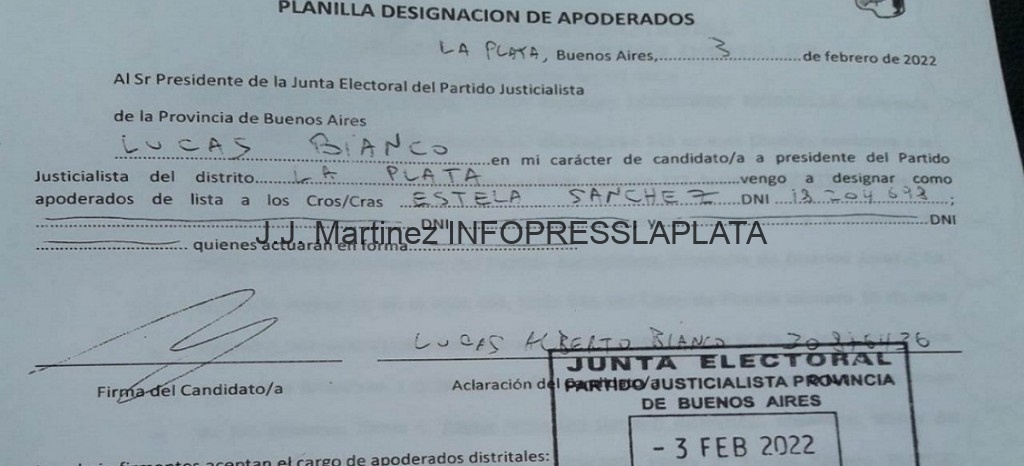 Efectivamente, hace pocos días se presentó ante la Junta Electoral partidaria la corriente que pretende participar de la interna peronista platense y propuso como candidato a presidente a Lucas Bianco.