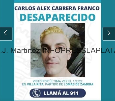 CARLOS ALEX CABRERA FRANCO de 36 años, es buscado desde la pasado martes 01 de Febrero, cuando habia ido a visitar a su hermano en la localidad de Villa Rita en Lomas de Zamora.
