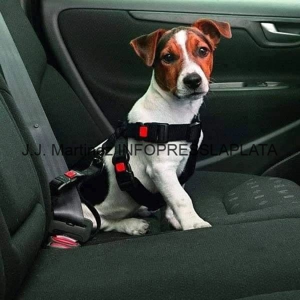 Los perros, cualquiera sea su tamaño, deben viajar con cinturón de seguridad como las personas o en una jaula de transporte. Nunca en el asiento delantero o en la falda de las personas.