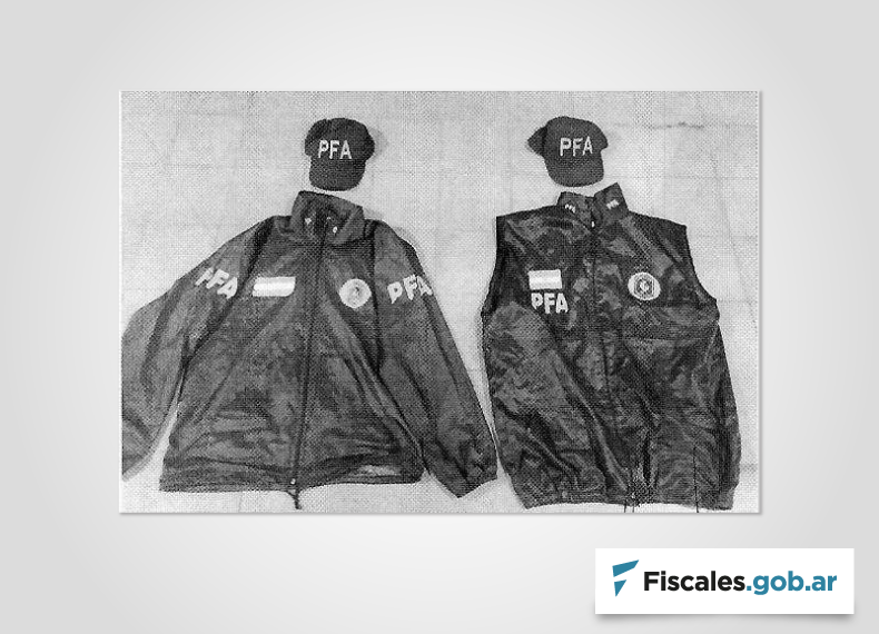 Además, se incautaron un juego de esposas en poder de Ruiz; dos camperas y gorras de la PFA; y credencial identificatoria auténtica de More como agente federal; una computadora tipo notebook marca Haier color gris, fajas de clausura de la PFA; la orden de allanamiento falsa; y el Certificado de Cooperación de testigo de la PFA, entre otros elementos.