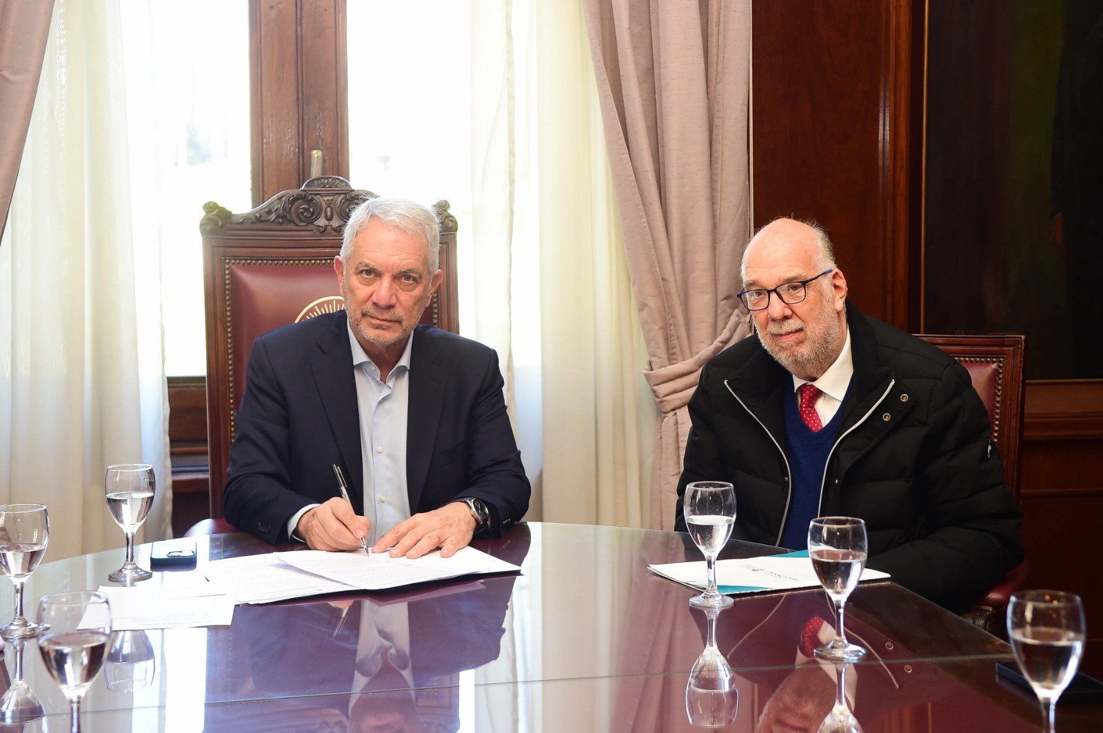 El intendente de La Plata, Julio Alak, y el decano de la Facultad de Ciencias Médicas de la Universidad Nacional de La Plata (UNLP), Juan Ángel Basualdo Farjat, firmaron un convenio a partir del cual los médicos graduados matriculados de la unidad académica trabajarán en los centros de atención primaria de la salud (CAPS) y los centros comunales de la ciudad.