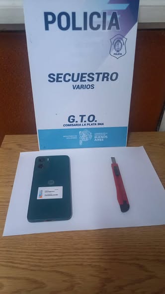 Tras un rápido rastrillaje, los efectivos lograron interceptar a la mujer a pocos metros del lugar. Durante el cacheo preventivo, hallaron entre sus pertenencias la trincheta de mango rojo utilizada en el asalto y el teléfono celular robado, que fue reconocido por el damnificado.
