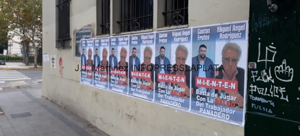 Efectivamente, se trata del secretario general de la FAUPPA y también secretario general del gremio de los panaderos de La Plata, Miguel Ángel Rodríguez. En su propia ciudad, el dirigente sindical vio cómo las paredes de varias zonas se empapelaron con su rostro y debajo la palabra “Mienten”.