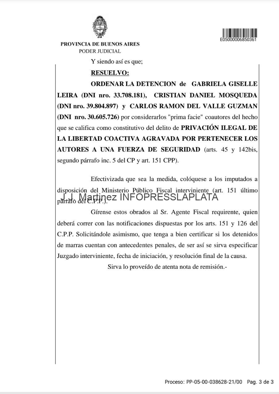 Las detenciones fueron realizadas por Asuntos Internos del Ministerio de Seguridad de la provincia de Buenos Aires tras una denuncia que radica en la Unidad Funcional de Instrucción (UFI) 3 Especializada en Conflictos Sociales del Departamento Judicial La Matanza.
